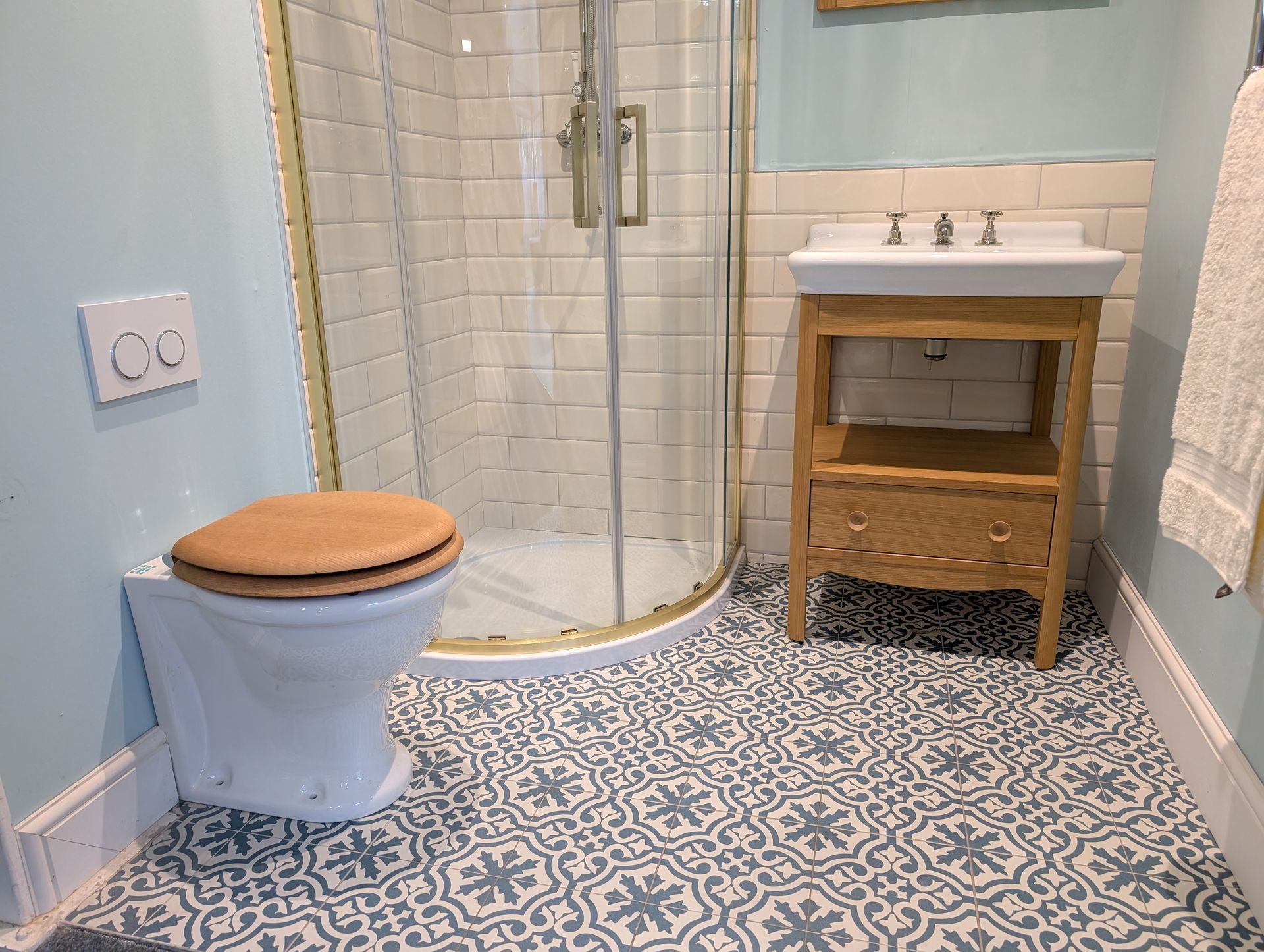 Shower Enclosure, 2 Way Shower System, 2 x Basin Mixers, Towel Warmer & Accessories